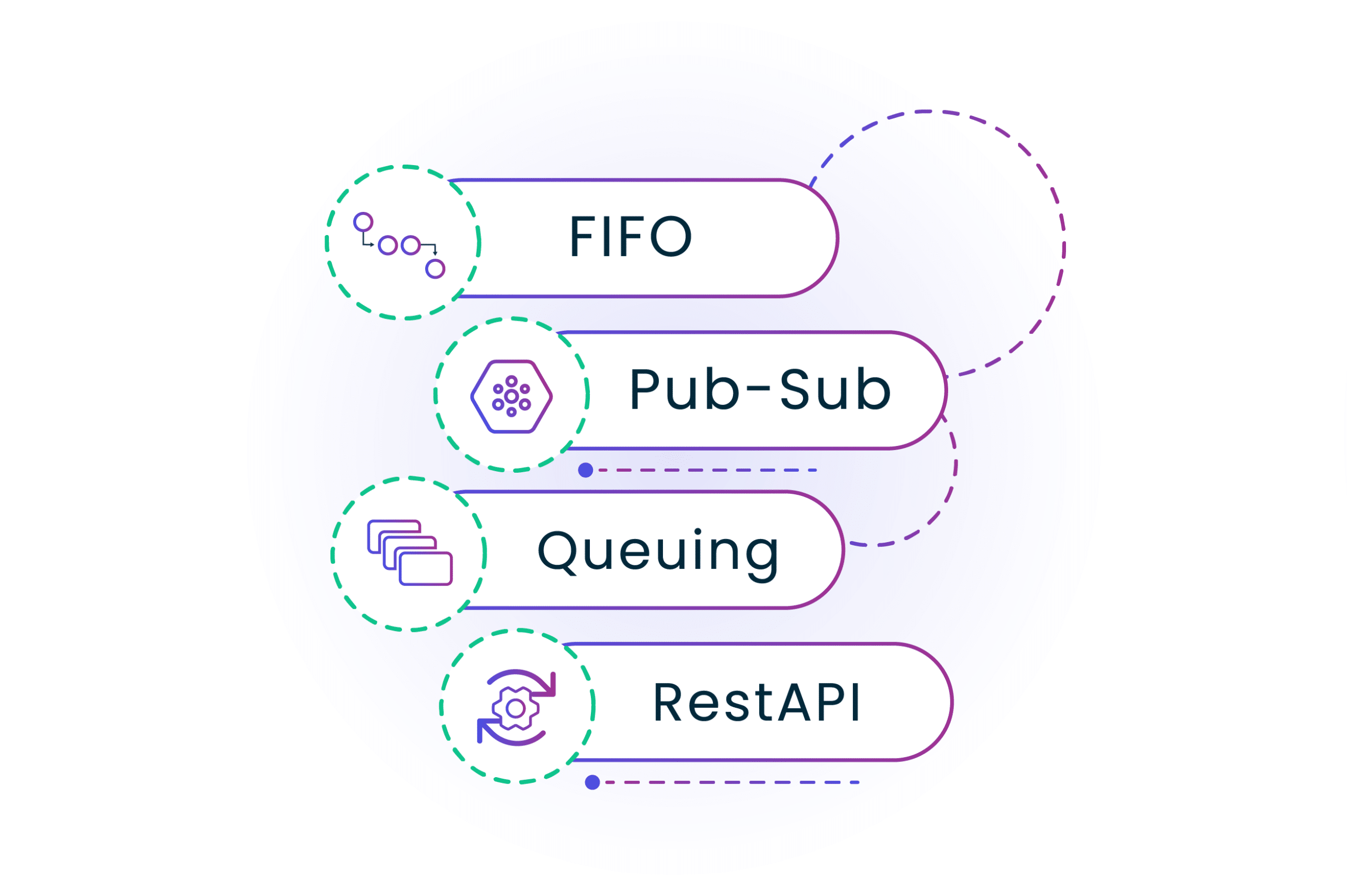 Support multiple delivery modes, including FIFO, Pub-Sub, RestAPI, and Queuing, to promote easy and seamless integrations with guaranteed delivery and ordering.
