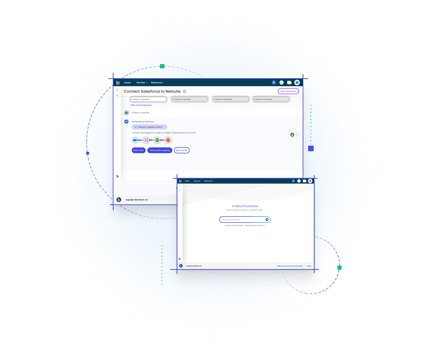 L'environnement de développement à code bas de Boomipermet aux utilisateurs de créer des intégrations rapidement et efficacement, en tirant parti de l'intelligence collective de plus de 300 millions d'intégrations.