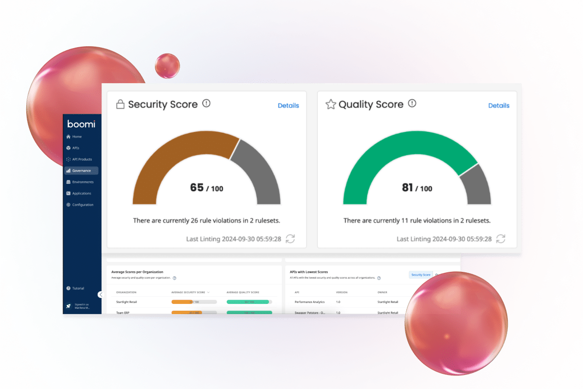 Boomiは、詳細なアクセス制御や柔軟なセキュリティポリシーの設定を可能にすることで、ISO 27001、PCI DSS、SOC 2、HITRUSTといった各種の規制基準への対応を支援します。また、自動監視機能や豊富なドキュメント管理機能、さらには定期的な監査体制を備えており、企業が大規模な環境でも法的・業界固有の要件を確実に満たせるよう設計されています。これにより、APIのライフサイクル全体を通じて、継続的かつ効果的にコンプライアンスを維持することが可能となります。