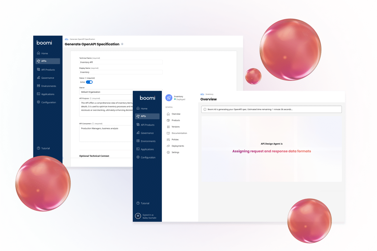 Boomiは、再利用可能な設計パターンの活用、規則の標準化、ポリシーの一元管理によって、チームや環境をまたいだAPIの標準化をサポートします。ガバナンス機能が開発ライフサイクルに組み込まれているため、各チームはバージョン管理や共通ルールの適用を容易に行え、すべてのAPIを組織や業界のベストプラクティスに沿って整えることが可能です。