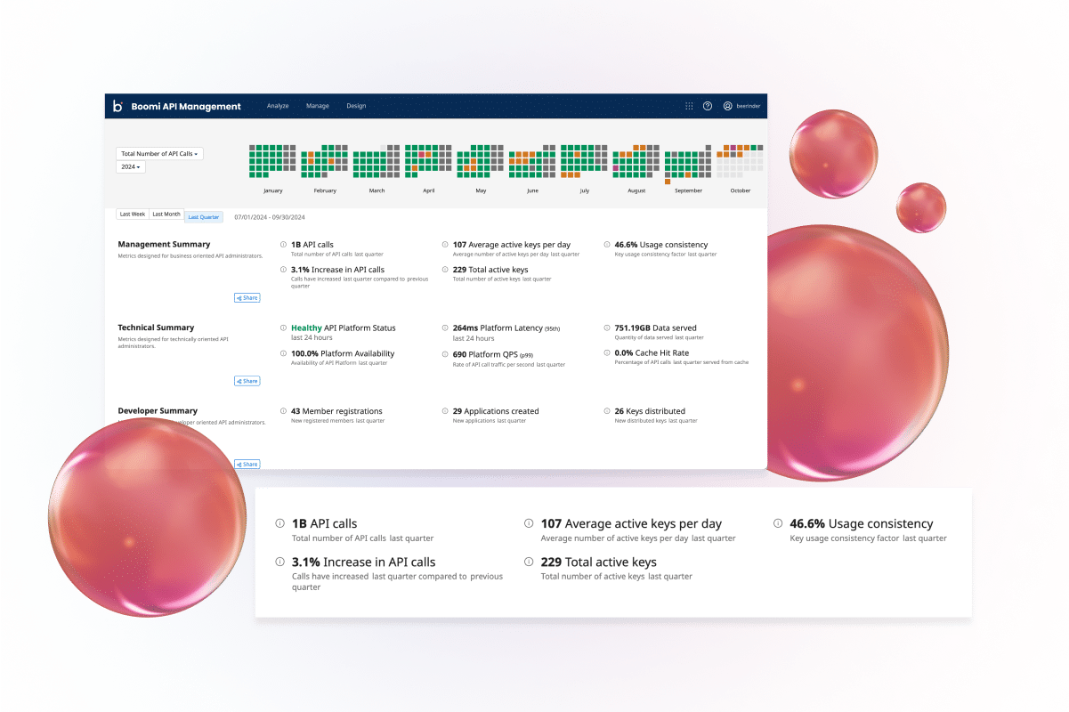 BoomiのAPI管理は、有効なガバナンスとセキュリティを重視しています。Boomiを活用することで、分散型ゲートウェイやハイブリッド環境、クラウド環境など、どのような構成であっても、すべてのAPIに対して一貫したセキュリティポリシーを適用できます。 この統一されたセキュリティプロトコルの適用により、環境をまたいだデータ漏洩や不正アクセスのリスクを最小限に抑えることが可能です。